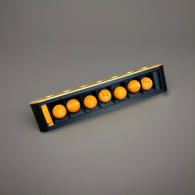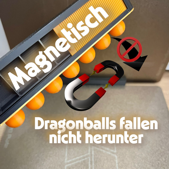 Alle 7 Dragonballs sind enthalten und die Auflagefläche, sowie die Dragonballs, sind magnetisch und fallen nicht einfach herunter. Der Schiebedeckel kann Fach für Fach geöffnet werden und so die Dragonballs Stück für Stück entnommen werden.