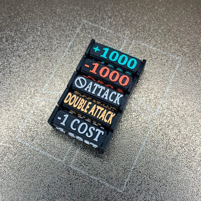 Praktisches Effekt Tokensystem für One Piece TCG zur verbesserten Darstellung von Fähigkeiten, Status und verändernden Effekten wie vieler beliebter Karten. Die Tokens kommen gut und gerne zum Einsatz und erleichtert das Spiel in nervenaufreibenden Partien enorm.