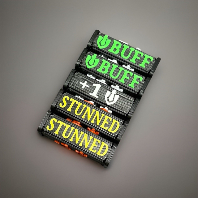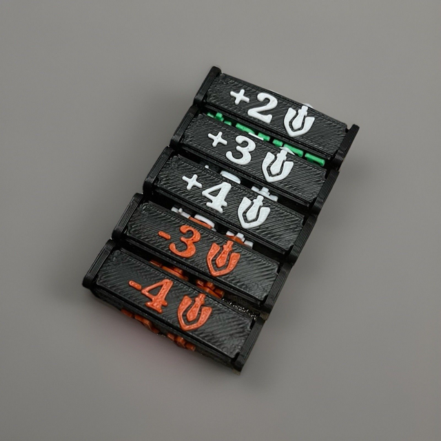 Diese Tokens aus eigener Produktion besitzen 4 individuallisierbare Seiten und können einfach entsprechend dem eigenen Wunsch zusammengesteckt werden. Wir erweitern unser Sortiment zeitnahe um weitere Module für dieses und weitere Tokensysteme.